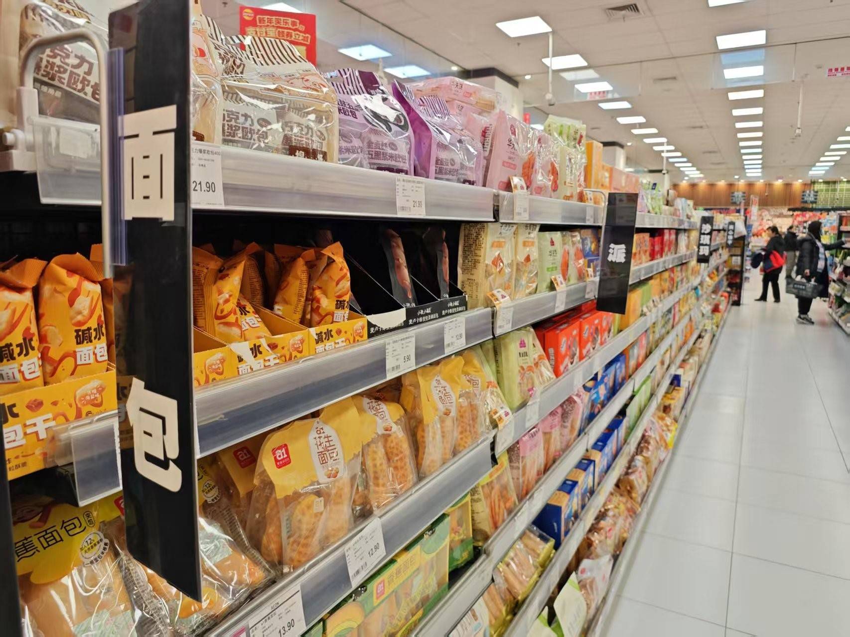 北京一家超市货架上的在售面包(央广网记者 宓迪/摄)