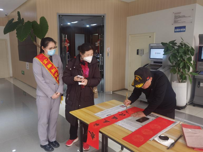 走进网点的客户们看到创作的活动现场,纷纷驻足欣赏品评,在厅堂内留下了欢声笑语久久回荡,有的客户挑选上适合自己的春联,有的客户珍惜机会难得为孩子求得鼓励的墨宝,感谢的话语此起彼伏、掌声雷动。