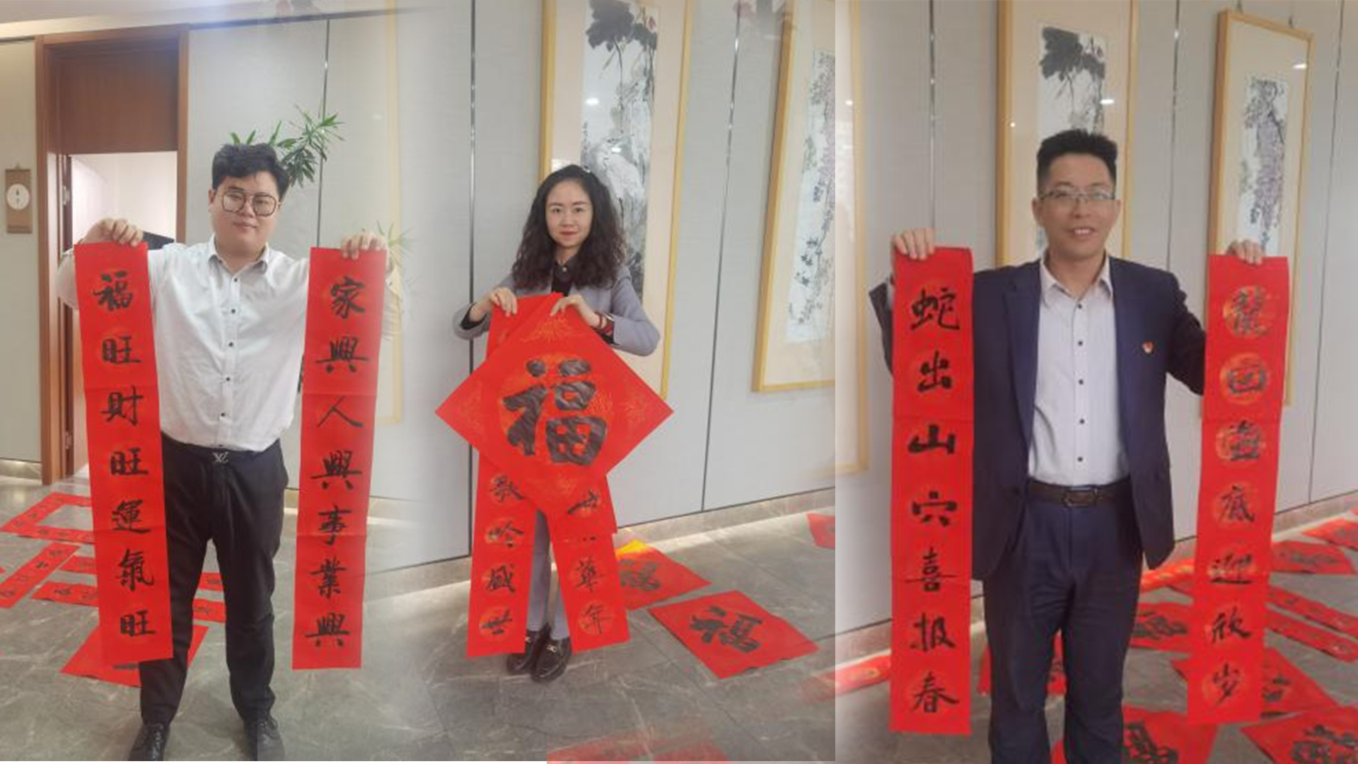 乙巳年春节来临之际,为增加节日气氛,弘扬传统文化,招商银行滨州分行联合滨州新拓画院,走进厅堂、走进企业、走到客户和员工身边,为招行客户和员工们送上新春祝福。