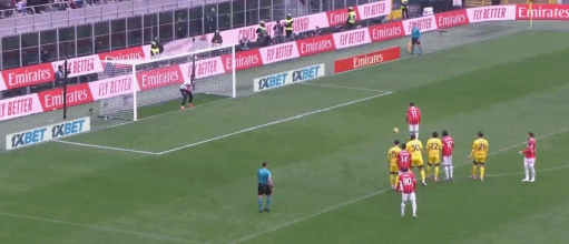 第38分钟,米兰获得点球,普利西奇一蹴而就,1比1。