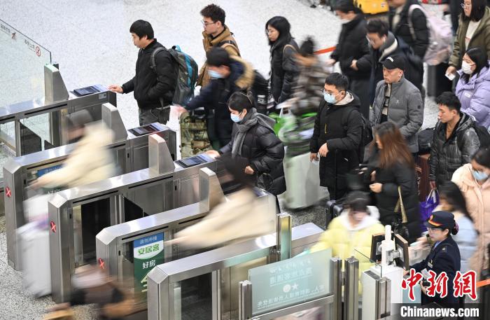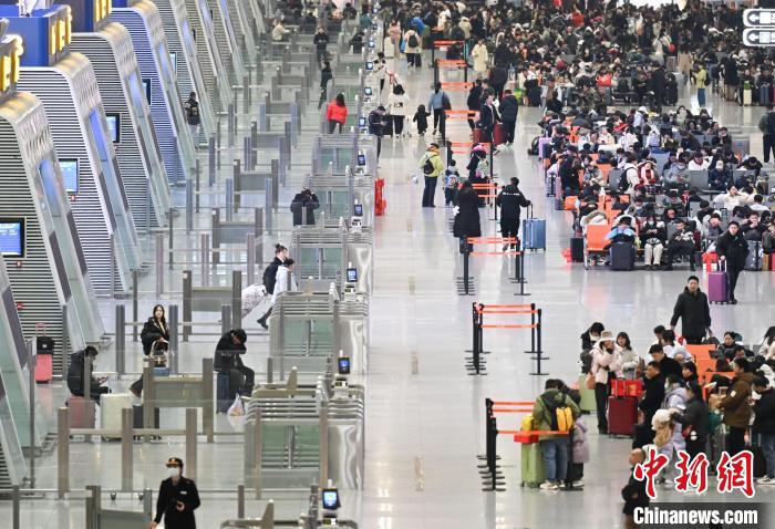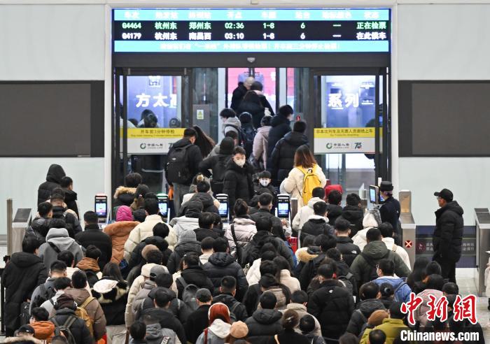 1月27日凌晨,大量旅客在杭州东站检票乘车。