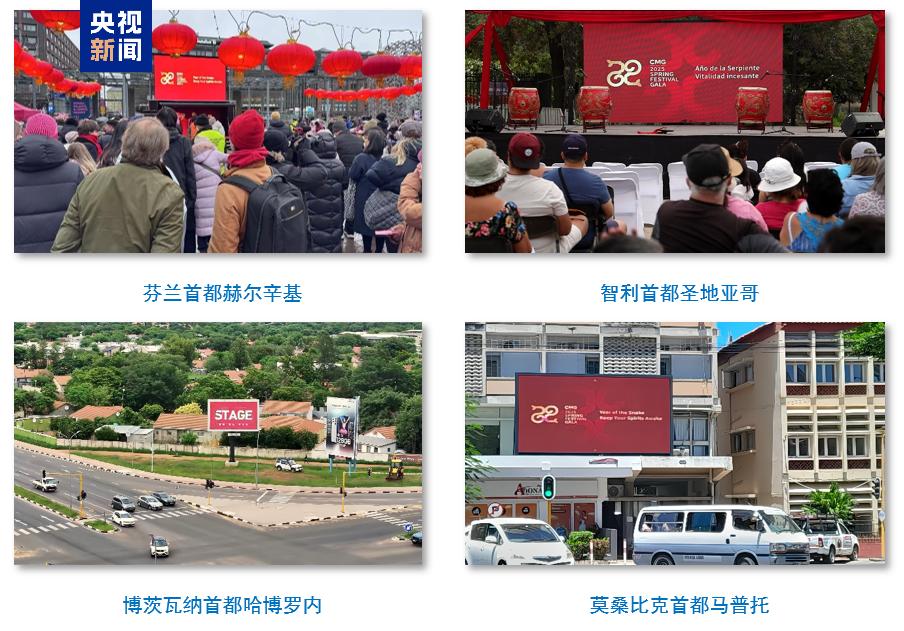 在美国纽约时报广场纳斯达克大屏以及联合国总部大楼、东帝汶帝力总统府、德国汉堡莫扎特音乐厅、澳大利亚网球公开赛户外大屏、英国特拉法加广场、俄罗斯圣彼得堡起义广场、南非曼德拉广场、阿联酋迪拜世博城、新加坡牛车水、伊拉克巴格达阿丽雅王后宫广场等多地海外地标性大屏,春晚宣传片惊艳亮相、持续刷屏,与世界共享浓浓中国年味。