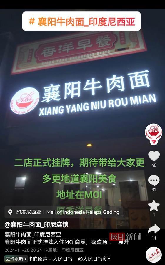 去年11月,一家湖北襄阳牛肉面馆在印度尼西亚首都雅加达开业的视频经社交媒体发布后,引发了大量网友的关注。1月29日大年初一,该店老板黄先生告诉极目新闻记者,前不久他又增开了一家店,今年春节两家面馆都不打烊,他将襄阳老家的父母接到了雅加达,一起过年团聚。