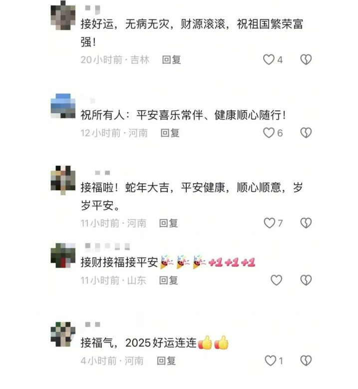 更多网友选择在财政部官微留言区许愿:“新年快乐,来接福,祝工作顺利、事业顺心、万事顺意、财源滚滚、无病无灾、健健康康”,“祝福祖国繁荣富强,也希望我的家人健康顺遂”。