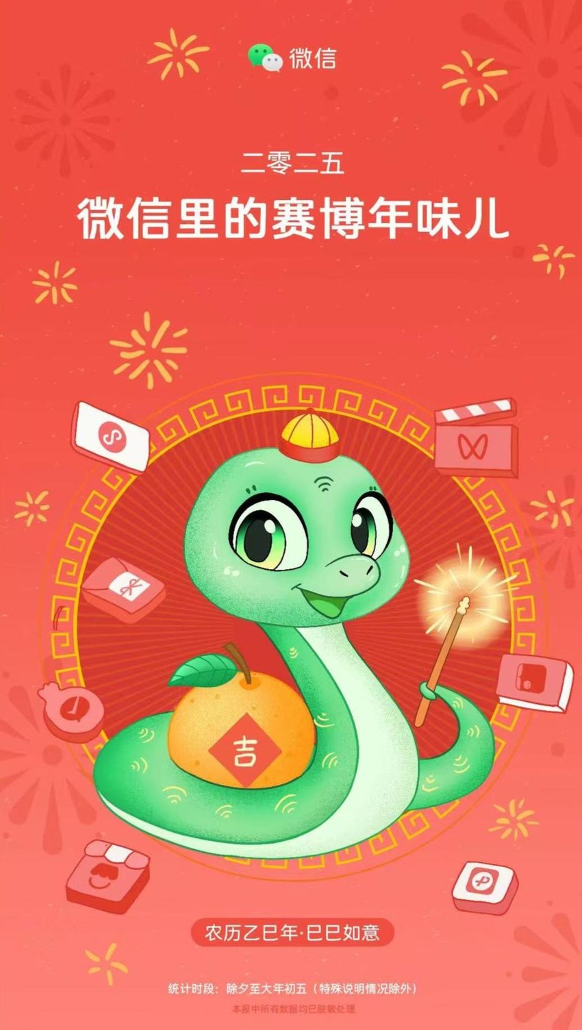 2月5日,微信派发布2025春节数据报告《微信里的赛博年味儿》,统计时间为除夕至大年初五。