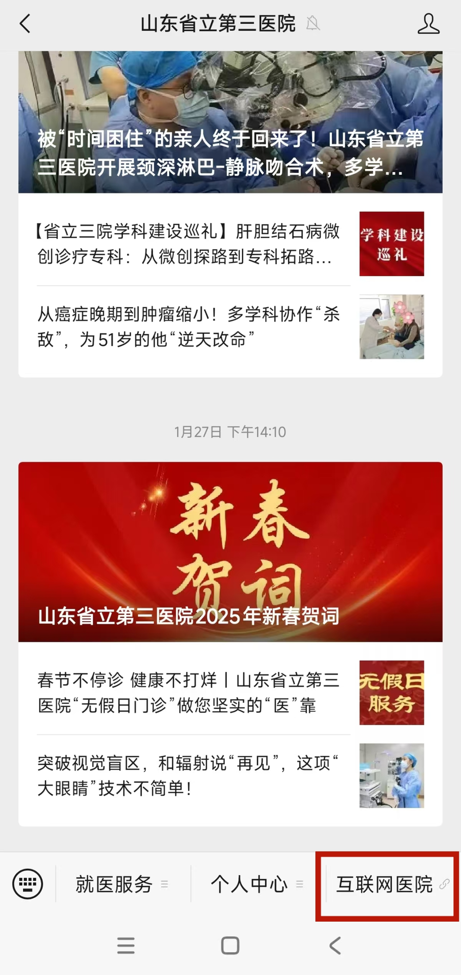 山东省立第三医院互联网医院主任王晶介绍,此次升级后,山东省立第三医院互联网医院实现了与院内多系统的深度融合,门诊、住院等各类服务均可通过“山东省立第三医院”微信服务号一触即达。目前已实现预约挂号、预约检查、预约检验、预约住院,检查开单支付、检验开单支付、处方开单支付、复诊患者可实现医保(门诊统筹)支付,家庭护理服务、预约体检服务、护理在线咨询、药师在线咨询等功能,极大拓宽了医疗服务半径,提升了医疗服务能力。