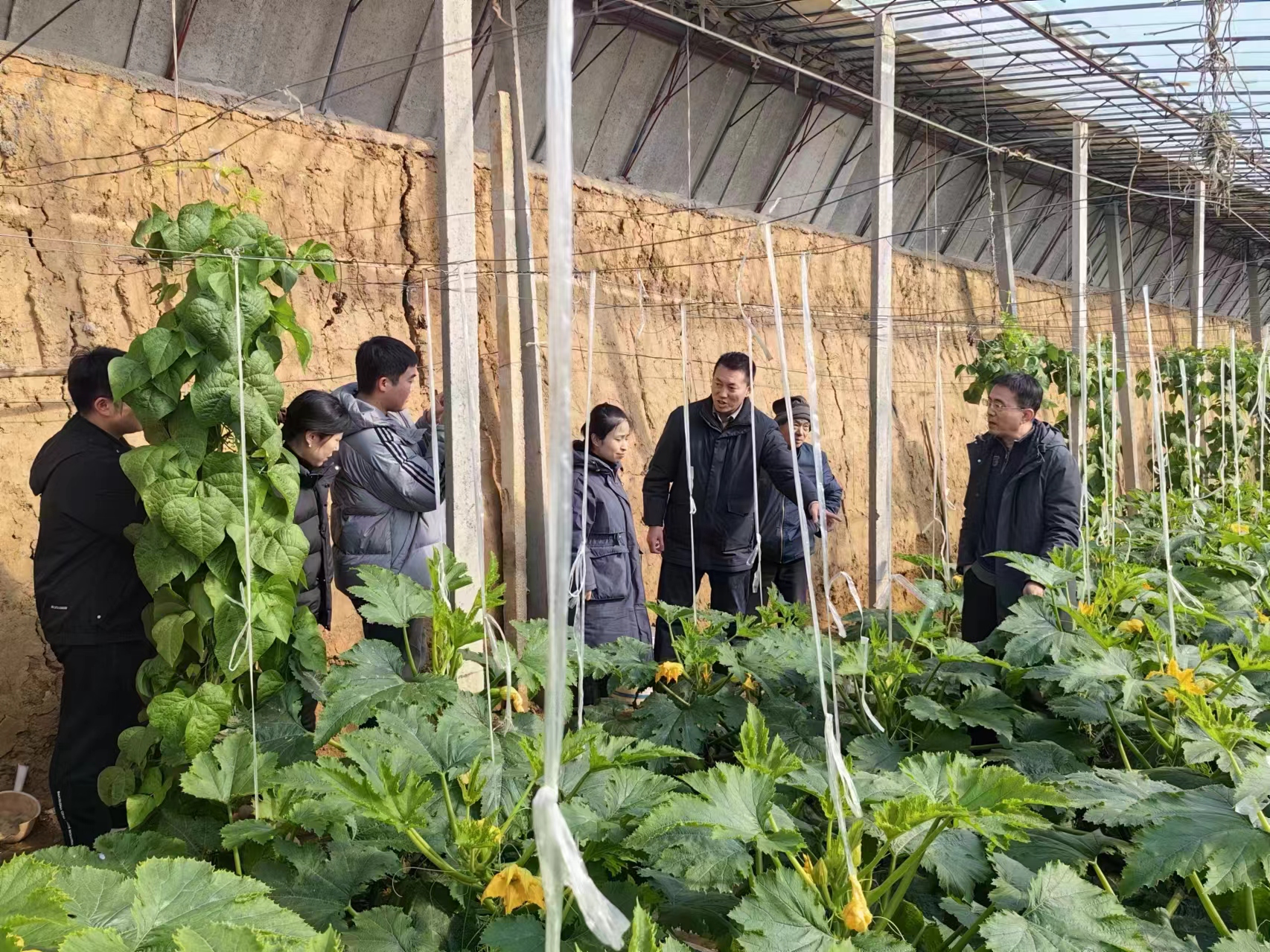 许孟镇有着“有着西葫芦第一乡”的称号,一直以来西葫芦都是村民们的丰收果。2024年11月22日,村里种植大户王泽平遇上了毁灭性大难题,西葫芦染上了卷叶病虫害,这种病虫害通过昆虫传播,起先是叶子逐渐枯萎,然后瓜变形,如果不及时处理,则会继续相互传染,甚至全棚覆灭。知道这一消息的范家铭立即向片区分管的第一书记丁木金进行了汇报,丁书记迅速联系山东省农业科学院,种植户将病虫害样本送至专家手中,第二天,专家立即来到段家庙村大棚里,现场为种植户拿出了病虫害的解决方案,有效遏制了更严重的后果,挽救了村民进一步损失。