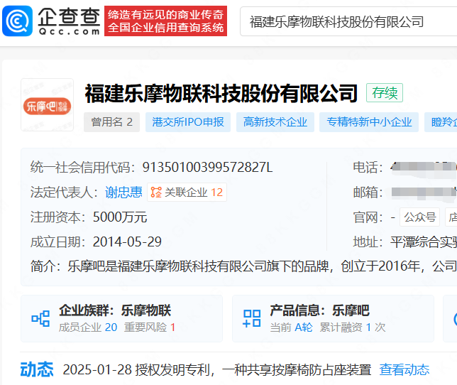 企查查APP显示,“乐摩吧”关联公司为福建乐摩物联科技股份有限公司,成立于2014年5月,注册资本5000万,法定代表人谢忠惠,由谢忠惠、韩道虎等多位自然人及公司共同持股。对外投资显示,该公司共对外投资14家企业,均为存续状态。