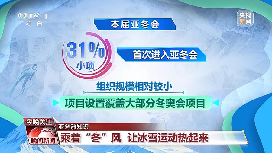 本届亚冬会,有31%的小项是首次进入亚冬会。亚冬会虽然组织规模相对较小,但项目设置基本会覆盖大部分冬奥会项目。