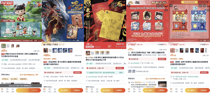 此外,淘宝相关负责人透露,上美影旗舰店《哪吒闹海》系列周边、90后回忆杀动画片《哪吒传奇》系列周边也在近期迎来了成交的可观增长。