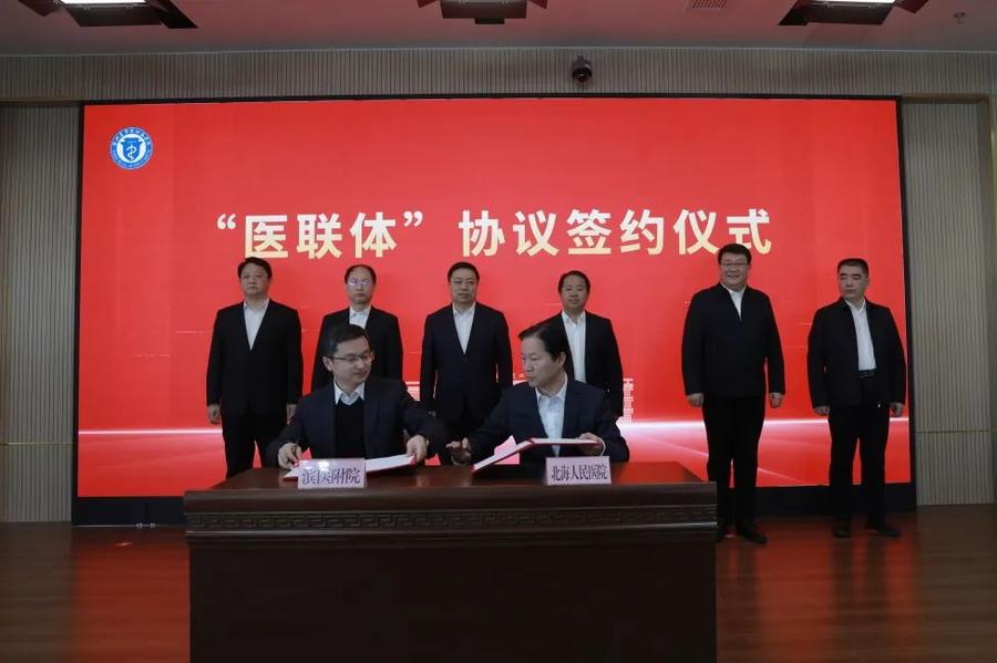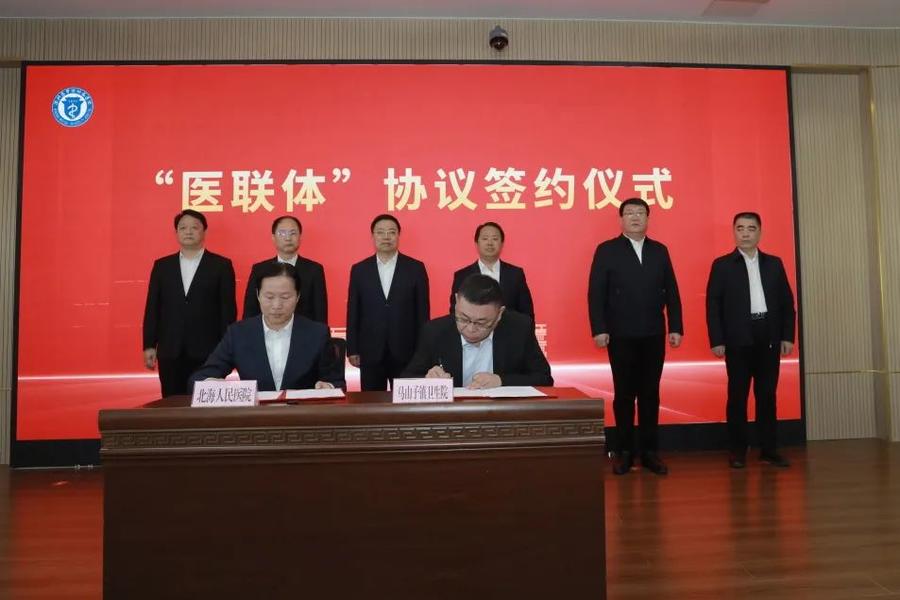 仪式上,滨州医学院附属医院与滨州医学院附属医院北海医院、滨州医学院附属医院北海医院与马山子镇卫生院分别签订“医联体”协议。与会人员到医院门诊楼、住院部等地进行了实地观摩。