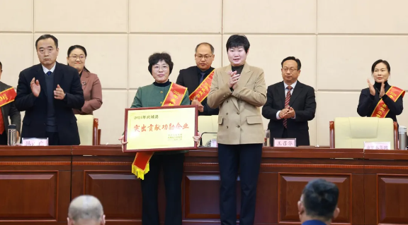2月8日上午,在武城县经济发展暨深化改革优化营商环境工作会议上,古贝春集团荣获“2024年武城县突出贡献功勋企业”称号。会上,古贝春集团党委书记、董事长徐秀菊作为获奖企业代表作典型发言。