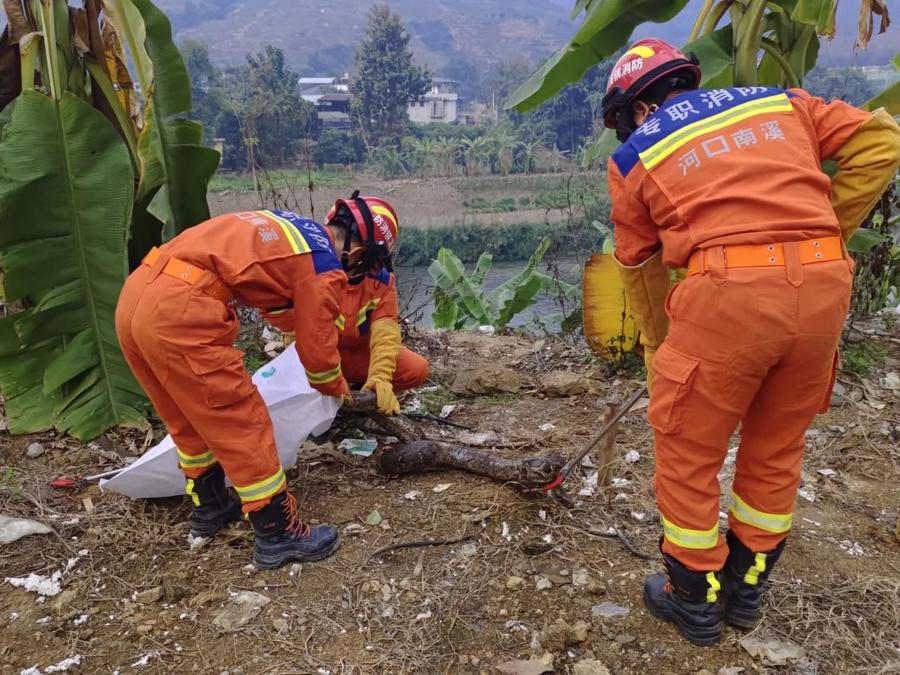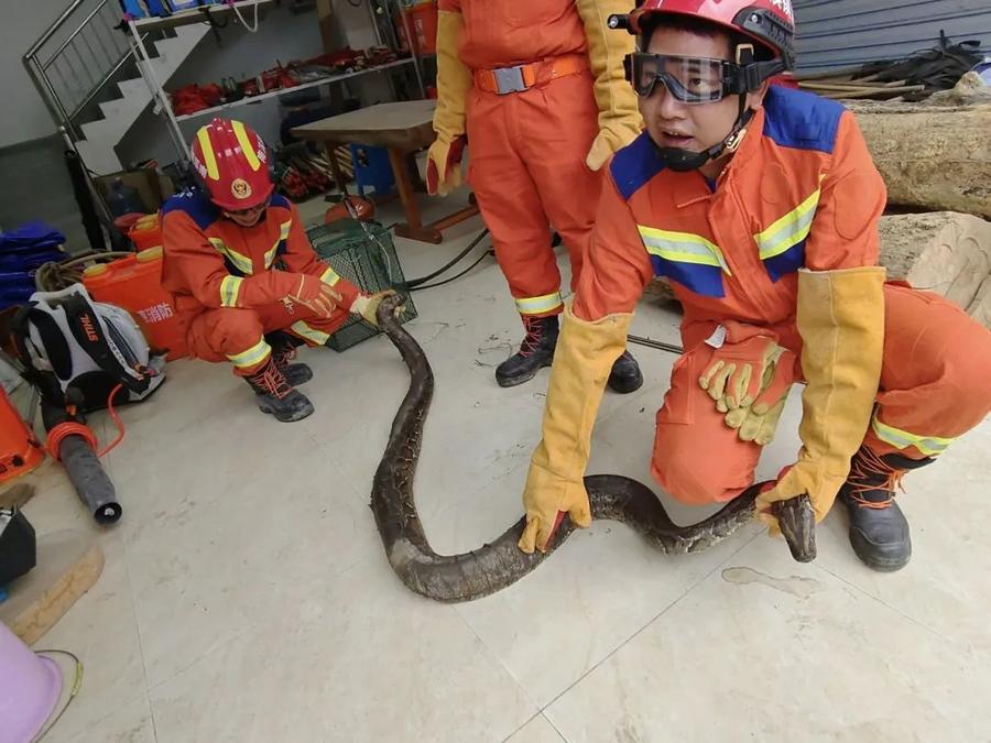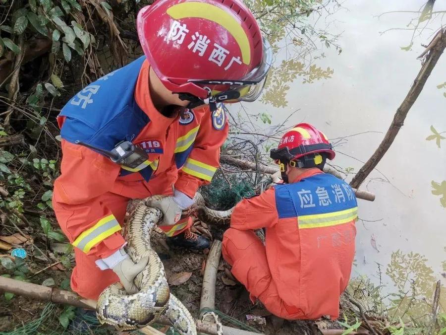 根据《中华人民共和国野生动物保护法》规定,消防员及时将受伤的“亚洲岩蟒”,移送至林业部门进行救治。