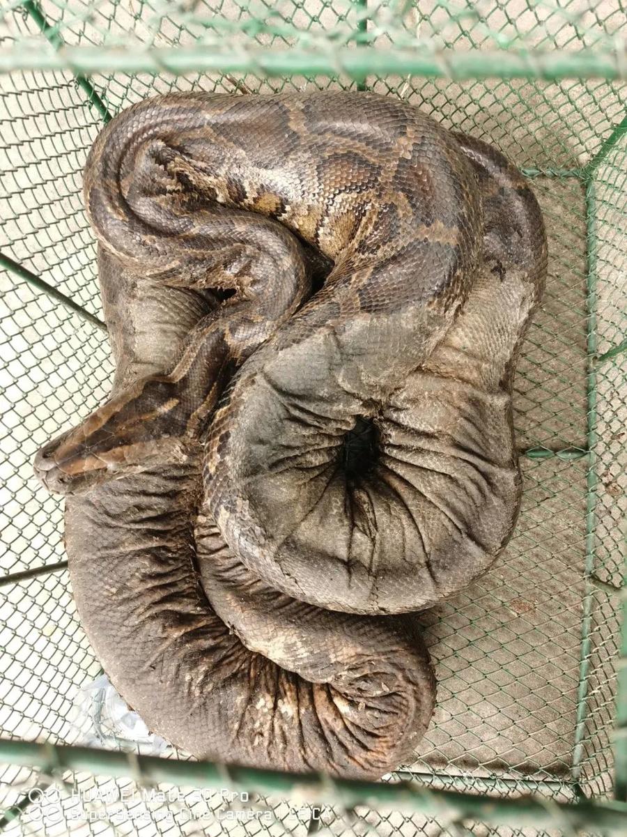 热闻|冬眠结束,两米长的蟒蛇出来“拜年”,吓坏村民!还好他们出手了