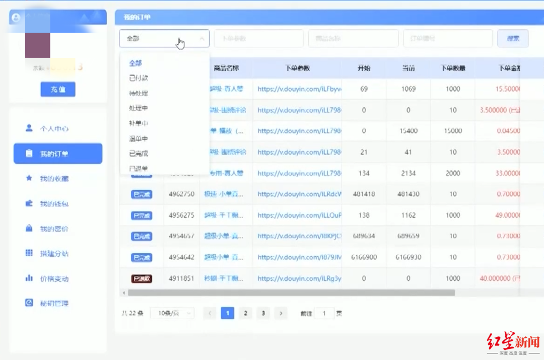 吴某乙向民警交代,他曾是一名全职“网络水军”,主要是给商家刷五星好评。后来,随着短视频的火热,开始接短视频刷量等业务。2018年以来,随着订单量增大,吴某乙组建团队并招揽员工,同时请了专业技术人员搭建服务器,通过网站完成接单任务。