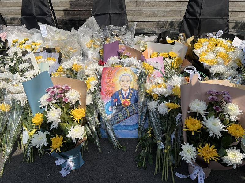 2月10日,武昌殡仪馆大厅外摆满了悼念黄旭华院士的花束。新华社记者 温竞华 摄