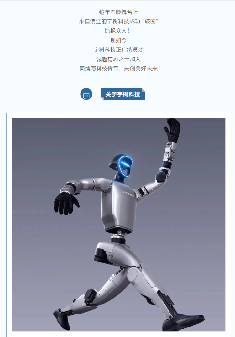 2月10日,据杭州市滨江区委宣传部官号“滨江发布”消息,宇树科技正在招聘机械结构工程师、嵌入式软件工程师、嵌入式硬件工程师、生成式AI算法工程师、深度强化学习算法工程师、机器人感知算法工程师等多个岗位。