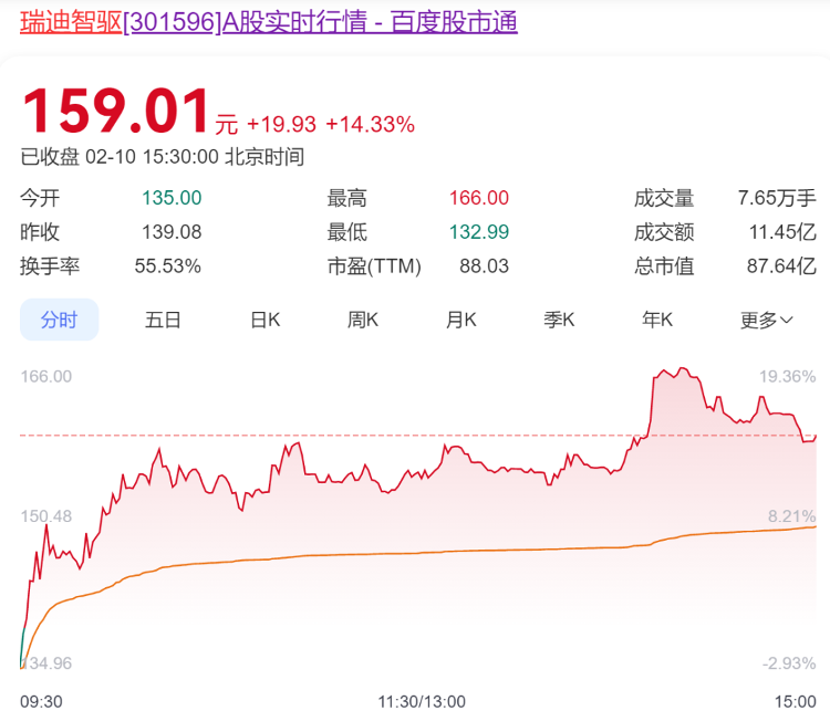 A股方面,人形机器人概念股近期大涨。瑞迪智驱今日涨超14%,收报159.01元。华依科技今日涨近8%,收报39.04元。斯菱股份涨超15%,收报112.40元。三丰智能涨3.13%,收报11.55元。