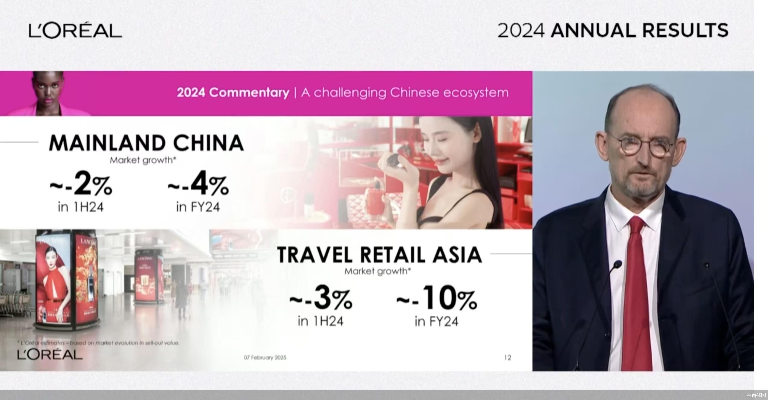 对此,欧莱雅在财报中解释称,北亚地区增长放缓主要是受到中国大陆美容市场负增长,以及海南地区旅游零售销售压力增加的影响。但欧莱雅在中国市场仍展现了韧性,销售额仅出现了个位数的小幅下滑,且高档化妆品、皮肤美容和专业产品部门的表现均优于整体市场。