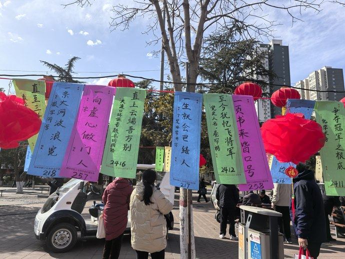中原网讯(郑报全媒体记者 裴其娟 文/图)元宵节灯谜活动不仅是传统民俗的延续,更是一面反映社会文化变迁的“镜子”。元宵节期间,郑州市一些机关、公园、商场等举办了精彩纷呈的灯谜竞猜活动,丰富了人们的精神文化生活,为元宵节增加了节日内涵和趣味。近日,记者浏览这些灯谜发现,随着时代发展,灯谜内容从古典文学、自然现象逐渐转向科技热点、网络流行语甚至社会议题,呈现出鲜明的时代特色。