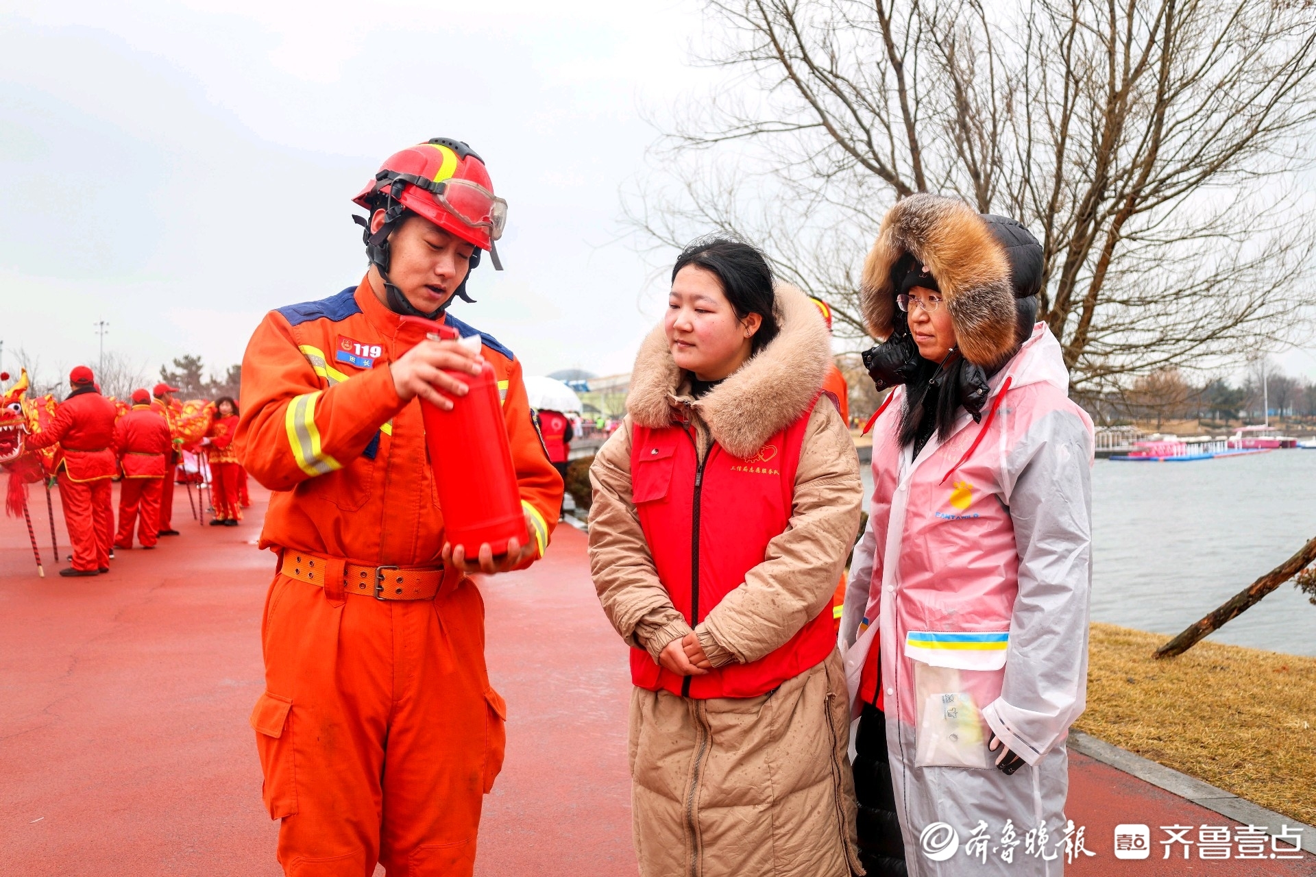 元宵节期间,为筑牢节日安全防线,山东多地消防部门通过联合检查、流动巡逻、特色科普宣传等形式,在灯会现场、庙会集市等重点区域安全护航,守护万家灯火。