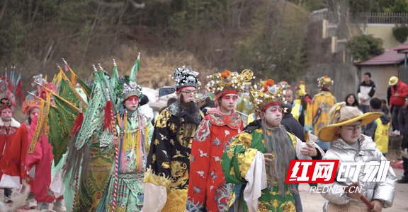 农历正月十三,湖南省衡阳县渣江镇水波堂村锣鼓喧天、鞭炮齐鸣,一场延续350余年的传统花灯巡游活动如期举行,身着各色戏服的花灯队伍走村串户,将祝福送到乡邻家中,祈福国泰民安、风调雨顺。