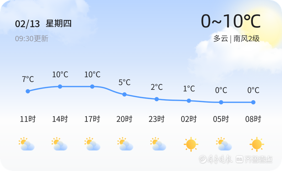 2月13日,正月十六,聊城今日天气为多云,气温在0℃至10℃之间,南风2级,相对湿度36%,空气质量为轻度污染,PM2.5浓度为127微克/立方米。多云天气对市民出行影响不大,但空气质量稍差,建议敏感人群减少户外活动,市民出行时可佩戴口罩做好防护。