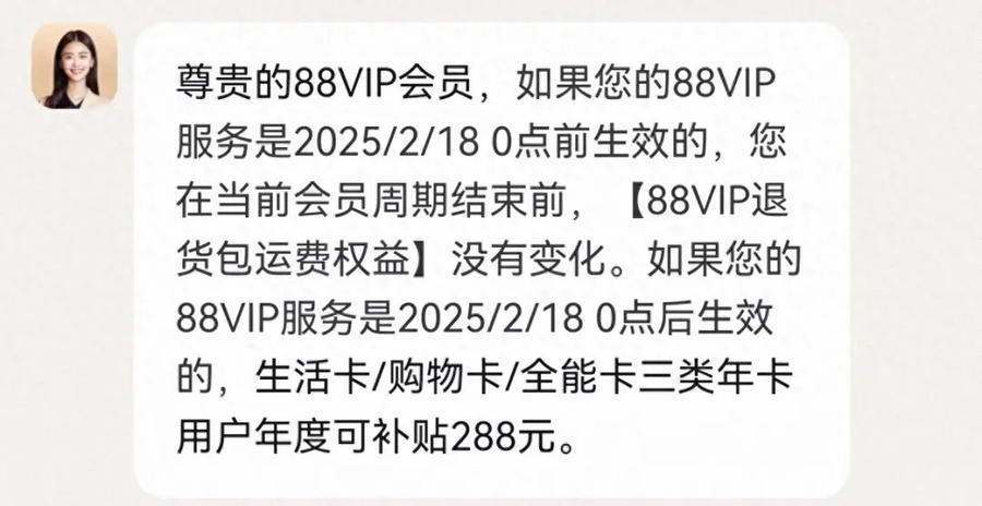 淘宝调整88VIP年卡权益,2月18号后续费的用户将不能无限退货