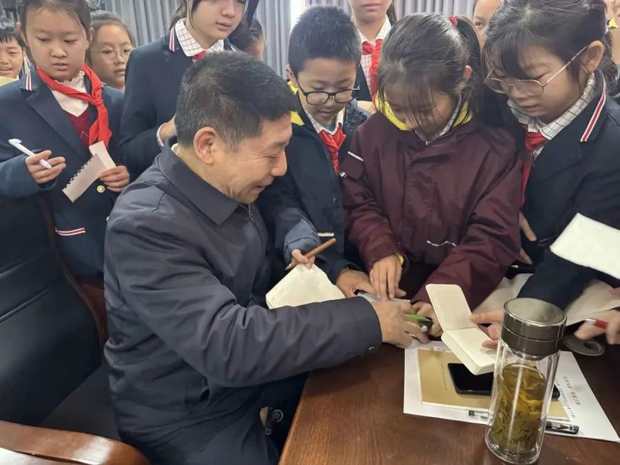 讲座结束后,同学们的热情如同被点燃的火花,纷纷涌向张伯伯,眼中闪烁着对英雄无尽的敬仰与向往。他们排起长队,手中紧握着笔记本或是早已准备好的小册子,期待着与英雄近距离交流。