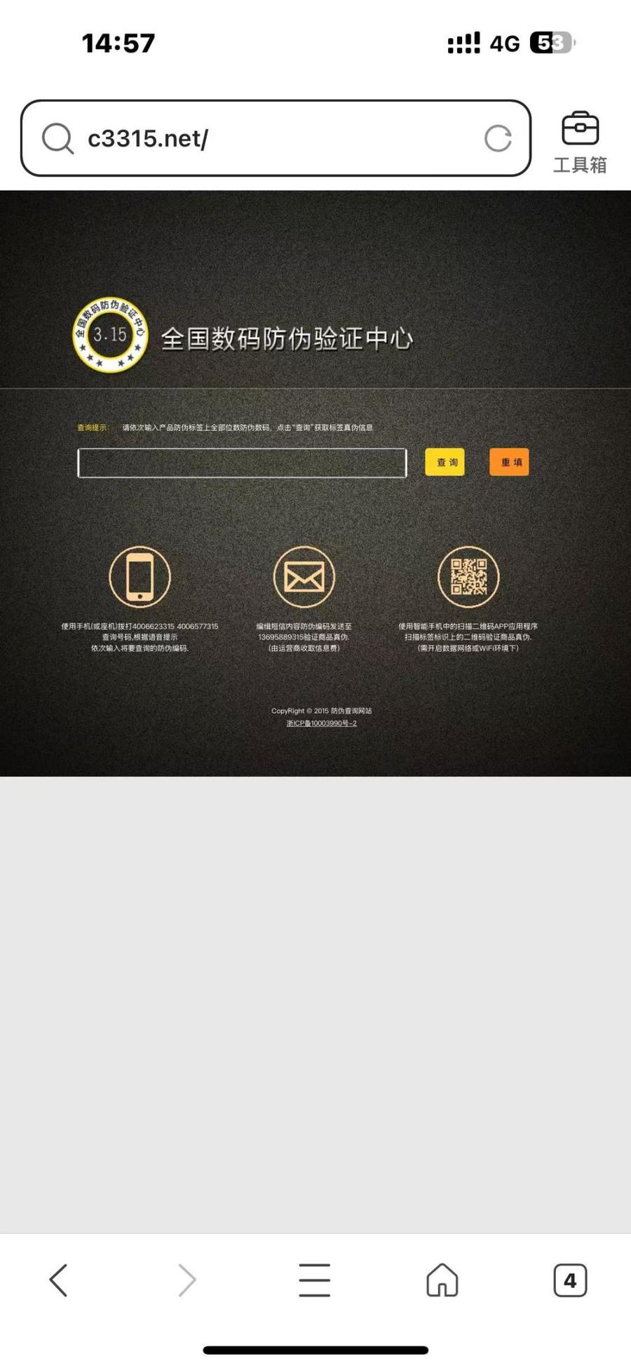一位不愿具名的业内人士介绍,不少防伪码是通用的,防伪网站也是多家企业共用。“做防伪码和防伪网站的技术很成熟,门槛也很低。类似的防伪网站非常多,网址和名称听上去都很权威,比如‘3.15全国数码防伪验证中心’‘商品信息防伪验证中心’‘中国商品信息验证中心’‘全国商品验证中心’等等。实际上,目前并不存在国家认证的防伪平台。”