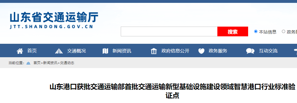 山东港口智慧港口获批全国首批交通运输行业标准验证点