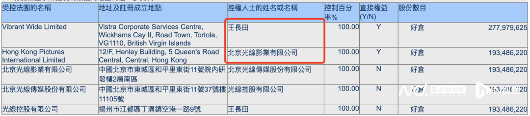 另外,南都记者发现, 在香港上市的猫眼娱乐的高管名单中,王长田的名字赫然在列,职务为非执行董事、董事长。据悉,王长田在2016年用23.83亿元的现金和价值23.99亿元的光线传媒股票拿下了猫眼57.4%的股权。南都记者查阅猫眼娱乐目前的持股股东可知,第一大股东Vibrant Wide Limited持股24%,第二大股东香港影业国际有限公司持股16.7%,前者控股人就是王长田,后者则是北京光线影业有限公司控股。作为影视公司,光线自然不愁内容储备, 而在线上票务平台冲击电影市场渠道格局之际,光线能够抓住机会投资票务平台,在销售渠道掌握话语权,无疑为自家公司的影视作品宣发和销售积累了相当大的优势。