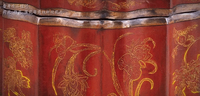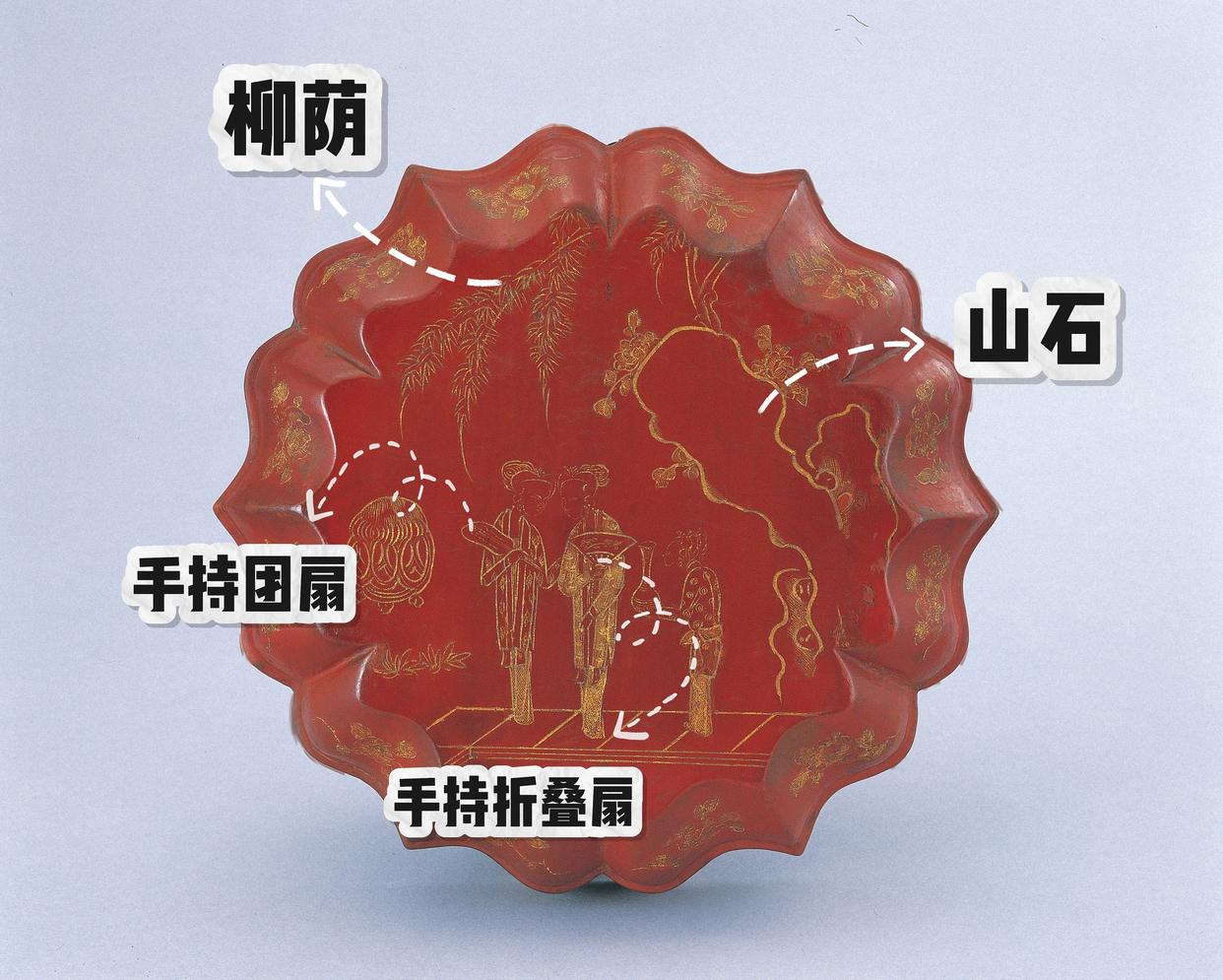 △南宋朱漆戗金莲瓣式人物花卉纹奁 常州博物馆藏