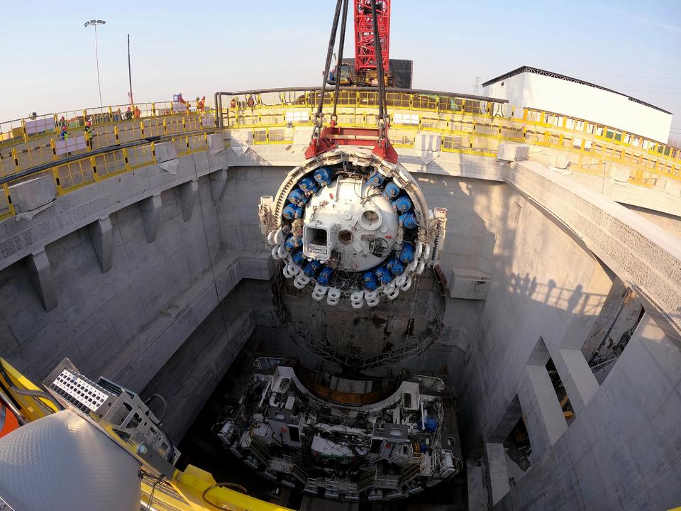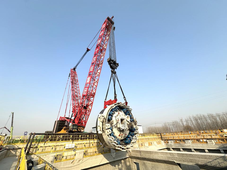 390吨“心脏”就位!济南航天大道穿黄隧道盾构机主驱动下井