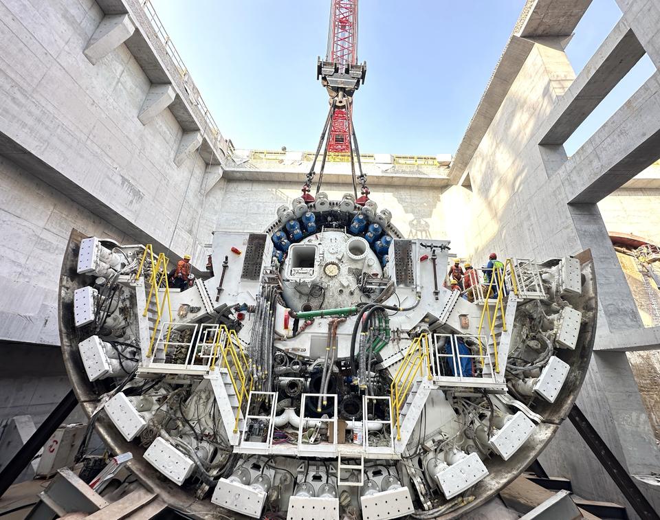 据悉,目前济南航天大道穿黄隧道工程“启航号”盾构机总体组装进度过半,配套设备组装完成60%,进入了入地组装的关键阶段,接下来还将进行盾构机的刀盘下井吊装工作,并全面开展盾构机始发前的整体安装调试。