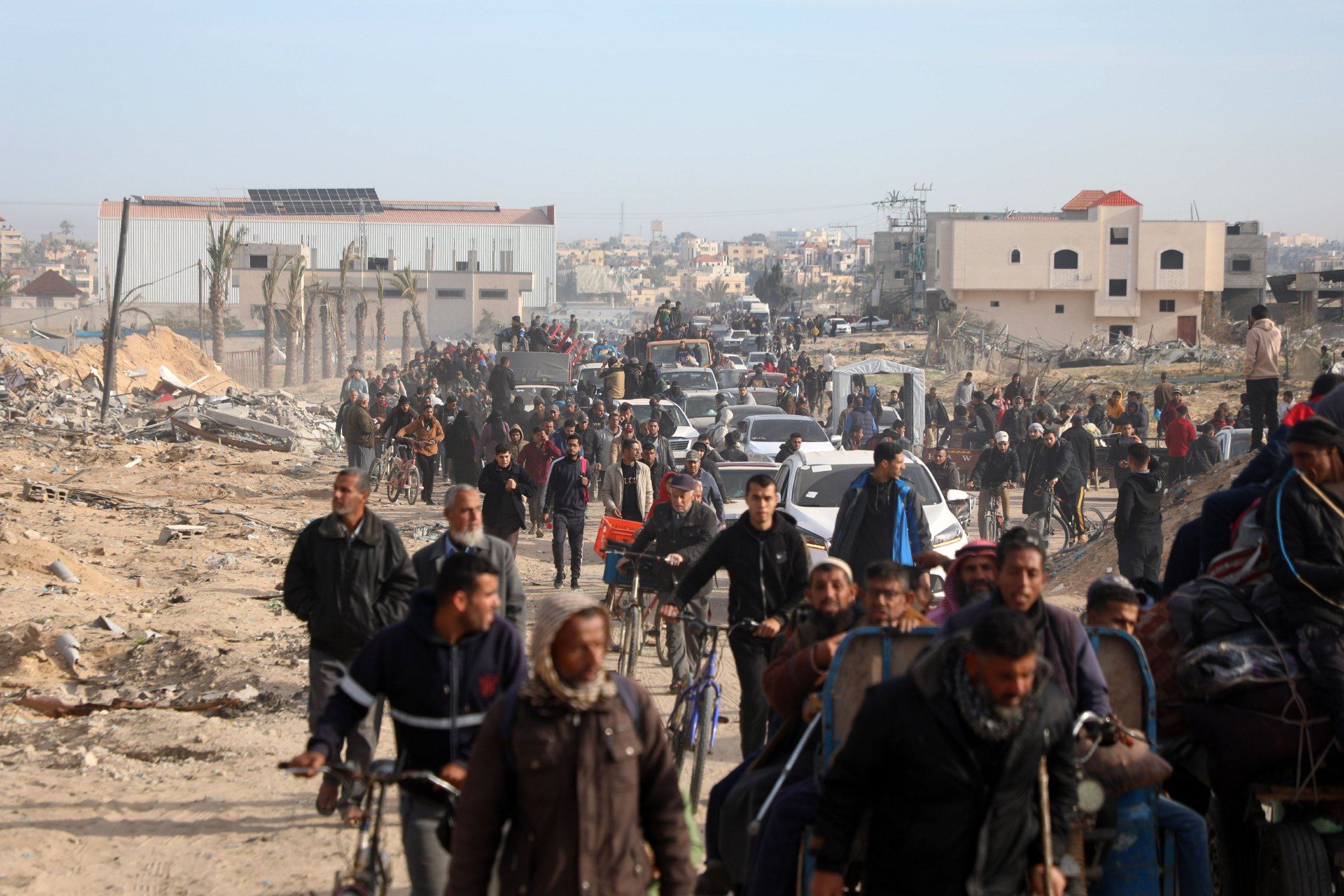 1月19日,巴勒斯坦民众返回加沙地带南部城市拉法。新华社发
