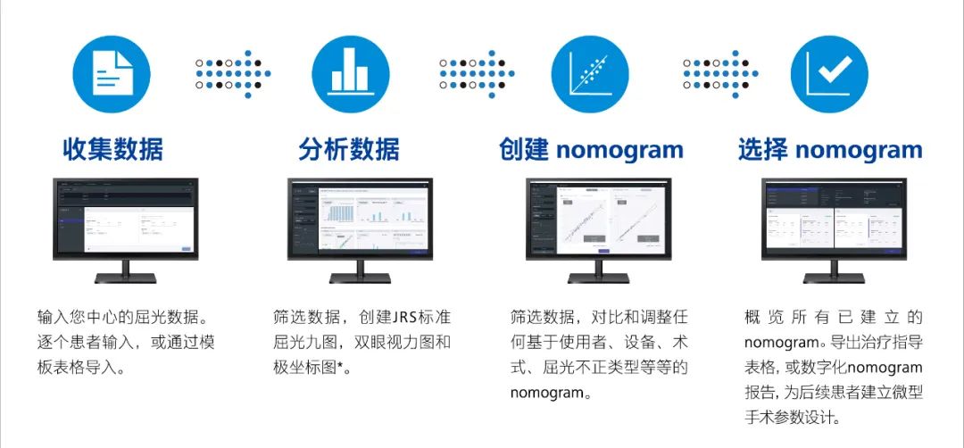 全飞秒精准4.0的全名是微创全飞秒精准4.0-VISULYZE(以下简称为全飞秒精准4.0),是基于全飞秒的Nomogram精准解决方案之上,帮助医生优化手术方案设计,帮助患者增强术后视觉质量。