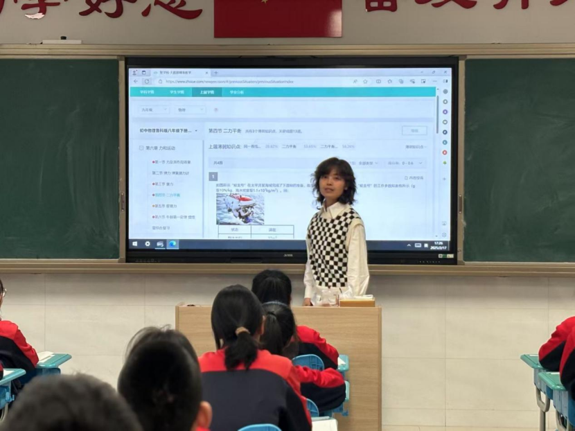 开学第一课,临淄区淄江中学九年级物理教师褚凤莲运用精准教学系统,对比班级与校区的学情数据,精准锁定薄弱点,同时结合历届学生易错题库,制定针对性复习方案,为新学期物理教学走好第一步。作为“淄博市智慧校园领航学校”,淄江中学不断探索“教、学、考、评、管”五位一体教学模式,全面助力学校科学管理、学科教研和精准教学,实现教学质量的稳步提升。
