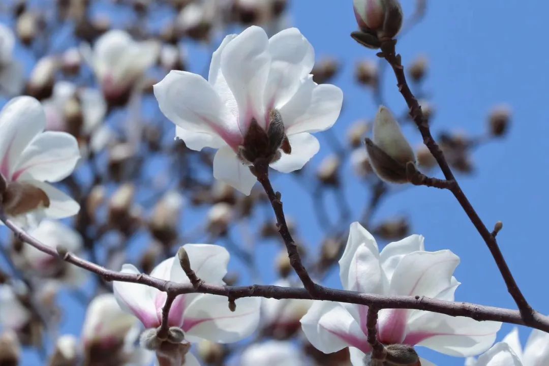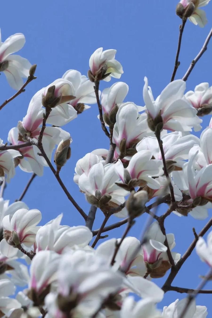 翠条多力引风长,点破银花玉雪香,玉兰的花语是“报恩”,每年盛开时,花瓣展向四方,青白片片,独特的淡香迎风摇曳,神采奕奕。不似其他春日里的花,娇艳夺目,玉兰的花朵硕大而繁茂,满满地挂满春天的枝头,大气昂扬地宣告着,春天就要来了!