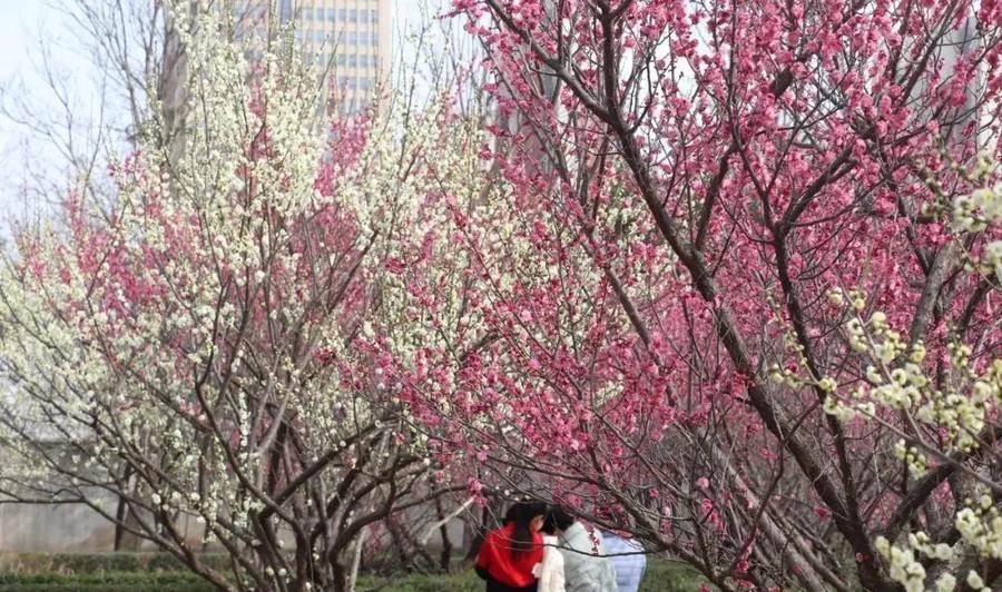 梅花,是菏泽早春里最明艳的一场惊喜。一到梅花季,菏泽的公园里、景区内就游人如织,一簇簇的梅花在阳光中摇曳,空气中弥漫着阵阵花香。梅花暗香浮动,层层叠叠的花瓣,如翩翩蝴蝶栖于枝头,构成了一幅鸟语花香、生机盎然的美丽画卷。在这曼妙的时光里,梅花以优雅动人的姿态,向您发出邀请,共赴一场花事。