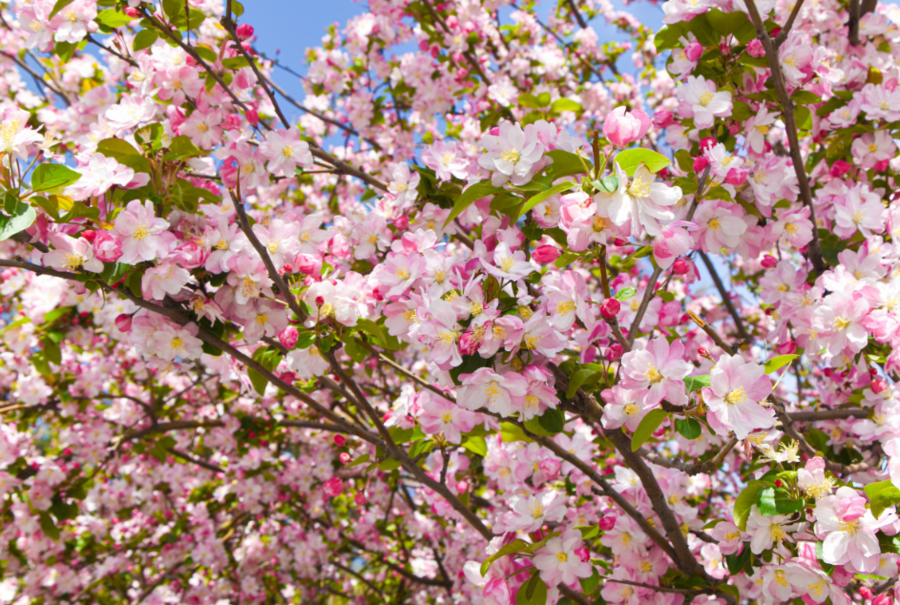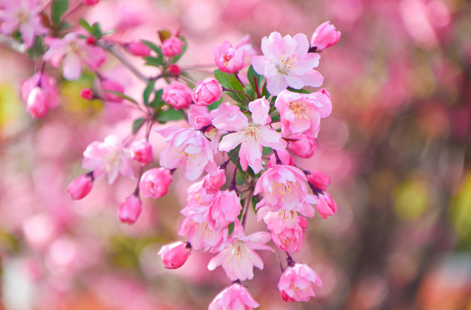 毕竟海棠花开时,恰值春意正浓的四月。此时桃李樱杏早已凋零,蔷薇还在酝酿着花苞,幸好有海棠,稳稳接棒,才教这份烂漫继续绵延人间。