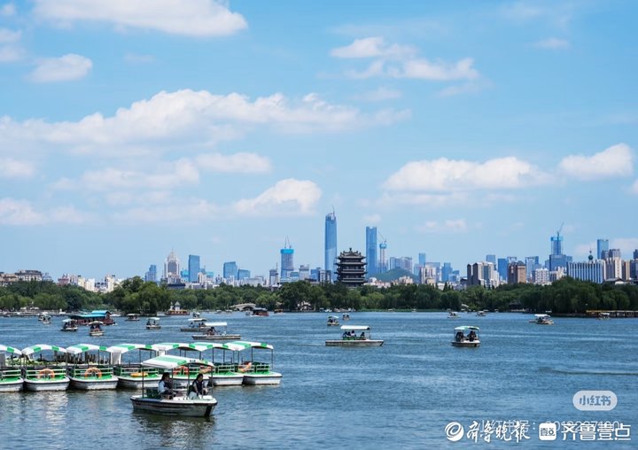春日的大明湖,湖面如镜,微风轻拂,泛起层层涟漪,乘上一艘游船,缓缓划入湖心,仿佛进入了诗画般的梦境。