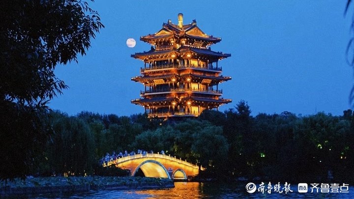 在大明湖畔,既能见到火遍全网的“夏雨荷”,细细品味雨荷花灯的魅力,也能看到百年楼阁披上现代的华裳。当暮色漫过大明湖,超然楼的轮廓也在渐渐暗下来的天际中浮现。济南的夜,是从一盏灯照亮历史开始的。