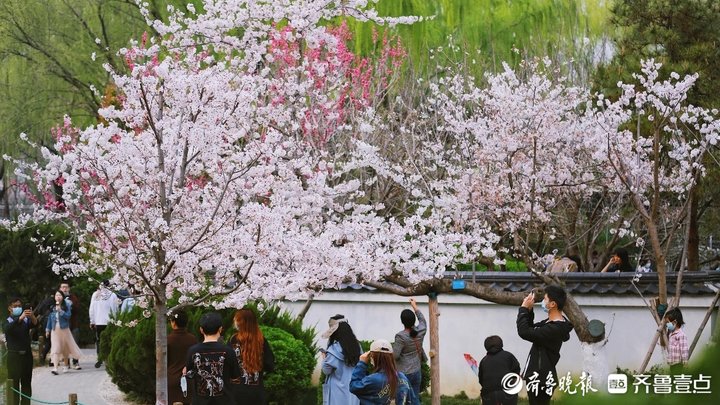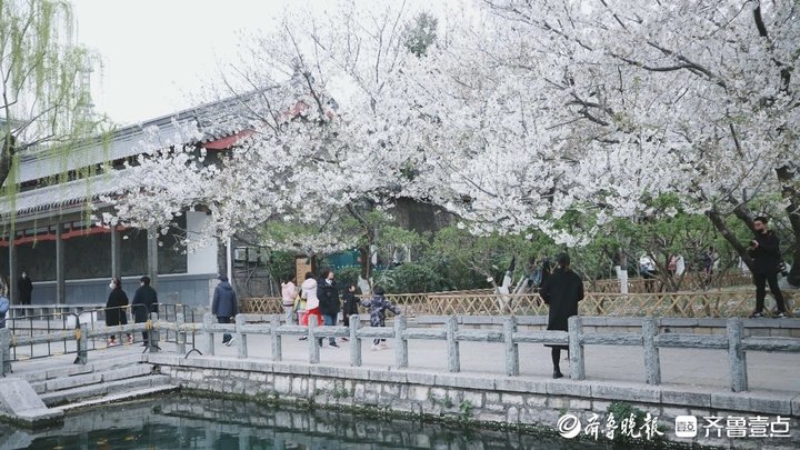 五龙潭的青砖绿瓦搭配刚好绽放的樱花,一切都是生机勃勃的样子,踏春赏樱,是济南的春天里最浪漫的事。
