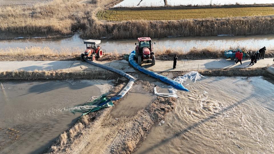 放眼望去,村民们三五成群地穿梭在田间地头,时而忙着查看水流情况,时而摆放排水管,在希望的田野上勾勒出一幅“人勤春来早”的田园劳作图。