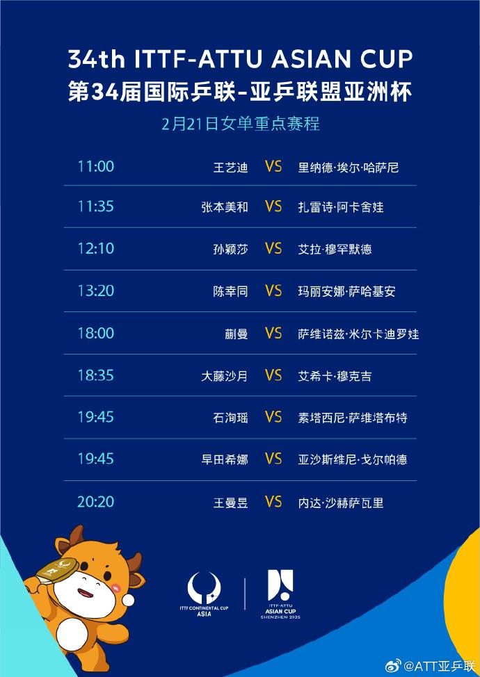 亚洲杯小组赛今日收官,国乒众将冲击16强,赛程表来了 央视新闻 2025-02-21 3526 今天是2025乒乓球亚洲杯小组赛最后一个比赛日。11:00,王艺迪率先出场对阵里纳德·埃尔·哈萨尼。12:10,孙颖莎迎战艾拉·穆罕默德。18:35,王楚钦将对战艾哈迈德·科兰尼。一起为国乒加油! (央视新闻) 责任编辑:周小涵