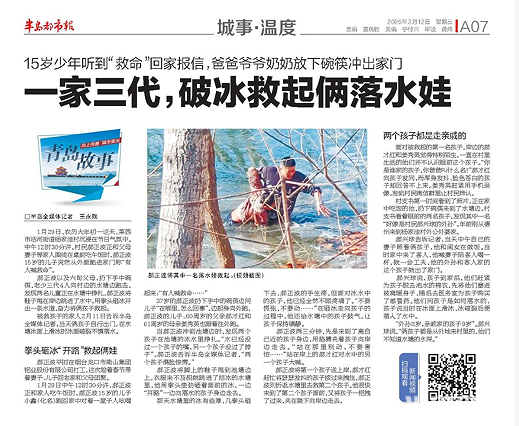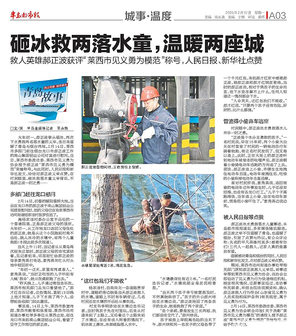此前,半岛记者前往郝正波的老家莱西市杨家洼村对郝正波大年初一救人之举进行了详细采访,分别以《一家三代,破冰救起俩落水娃》《砸冰救俩落水娃,温暖两座城》等题进行了多次报道。报道见报后,引发极大社会反响。
