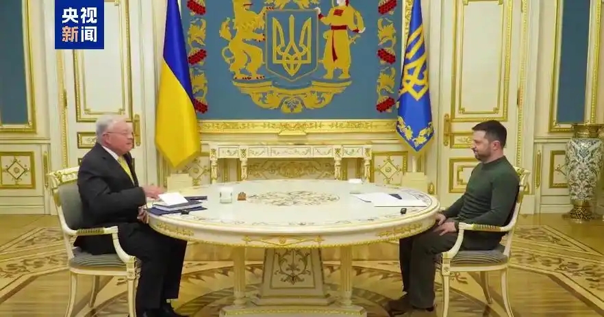 2月20日,在乌克兰首都基辅,乌总统泽连斯基(右)会见到访的美国政府乌克兰问题特使凯洛格。