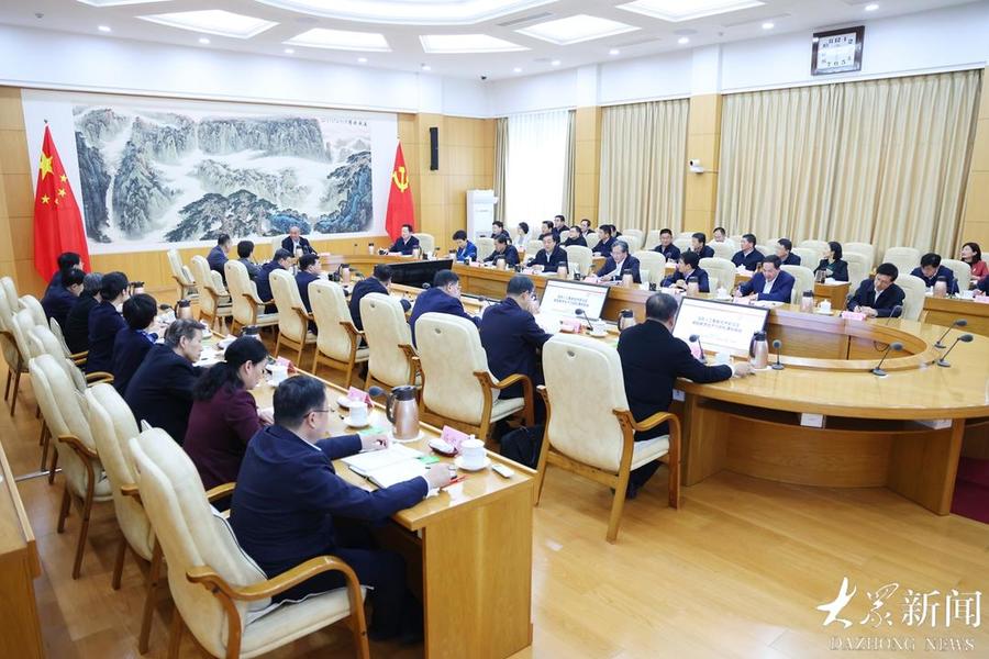 省委书记林武主持学习并讲话,周乃翔、葛慧君、王宇燕、杨东奇和中心组成员等参加。