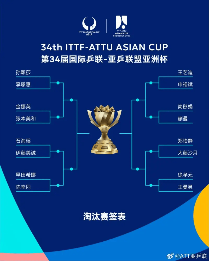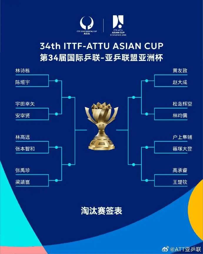 【乒乓球亚洲杯】1/8决赛签表出炉:林高远与张本智和再交锋,林诗栋陈垣宇打“内战”